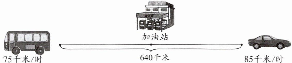 3. 两辆汽车同时从加油站出发,相背而行,几小时后两车相距640千米?