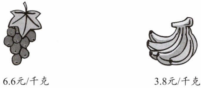 2. 张叔叔买了5kg葡萄,比买香蕉少花1.2元。张叔叔买了几千克香蕉?