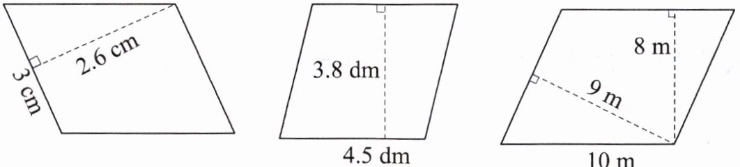 3. 计算下面各平行四边形的面积。