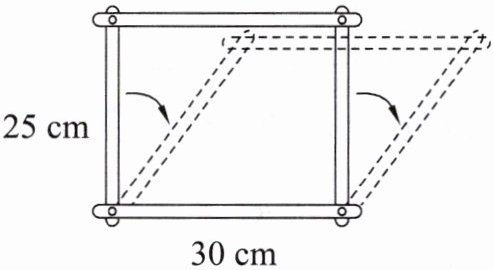 2. 用木条做一个长方形框架,长是30 cm,宽是25 cm。如果把它拉成一个高为20 cm的平行四边形,这个平行四边形的周长和面积各是多少?