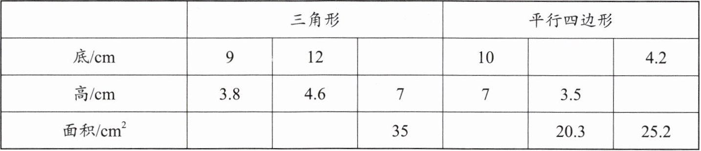 )$dm^2$。(4) 一个三角形与一个平行四边形的底和面积都相等。平行四边形的高是16 cm,三角形的高是(