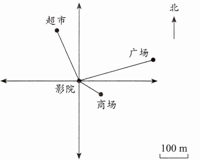(5)超市在广场的西偏北方向,商场在广场的西偏南方向。