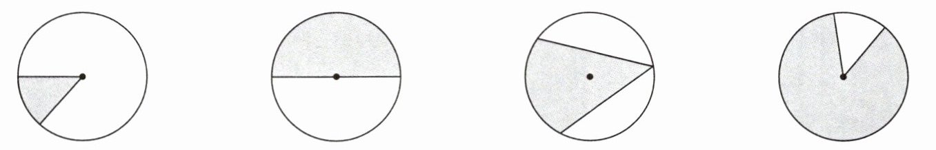 1. 下面各图中,阴影部分是扇形的,在下边的( )里打“√”。