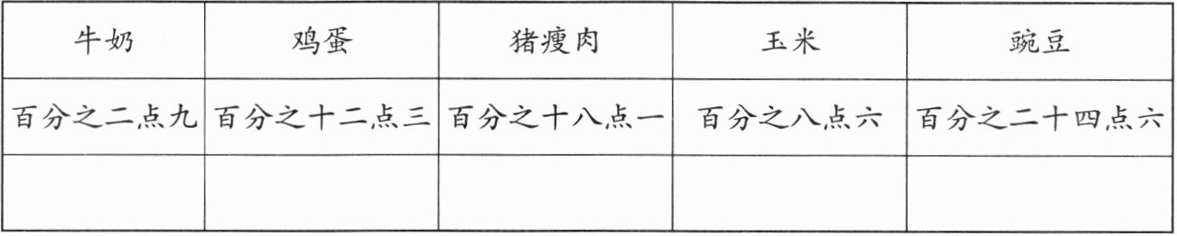 2. 写出下面食物中蛋白质含量的百分数。