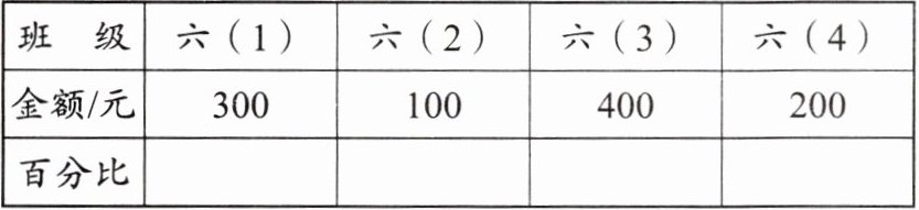 (1)算出各班捐款金额占总捐款金额的百分数,填在上表中。