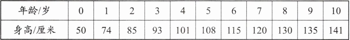 1.(1)妈妈记录了钟毅0岁到10岁的身高,身高变化如下表。