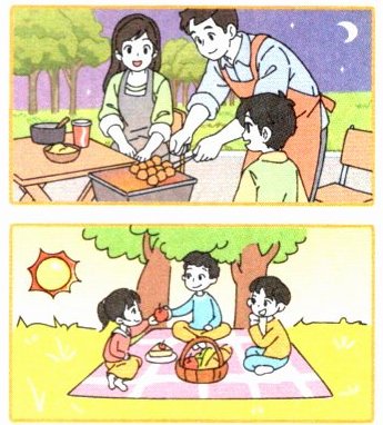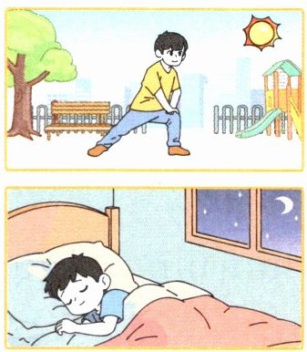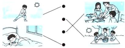 五、Peter 旅游时拍了很多照片,将照片与相应的问候连起来。