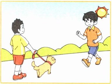 ( )3.晚上七点散步时,你遇到 Peter,可以说:______