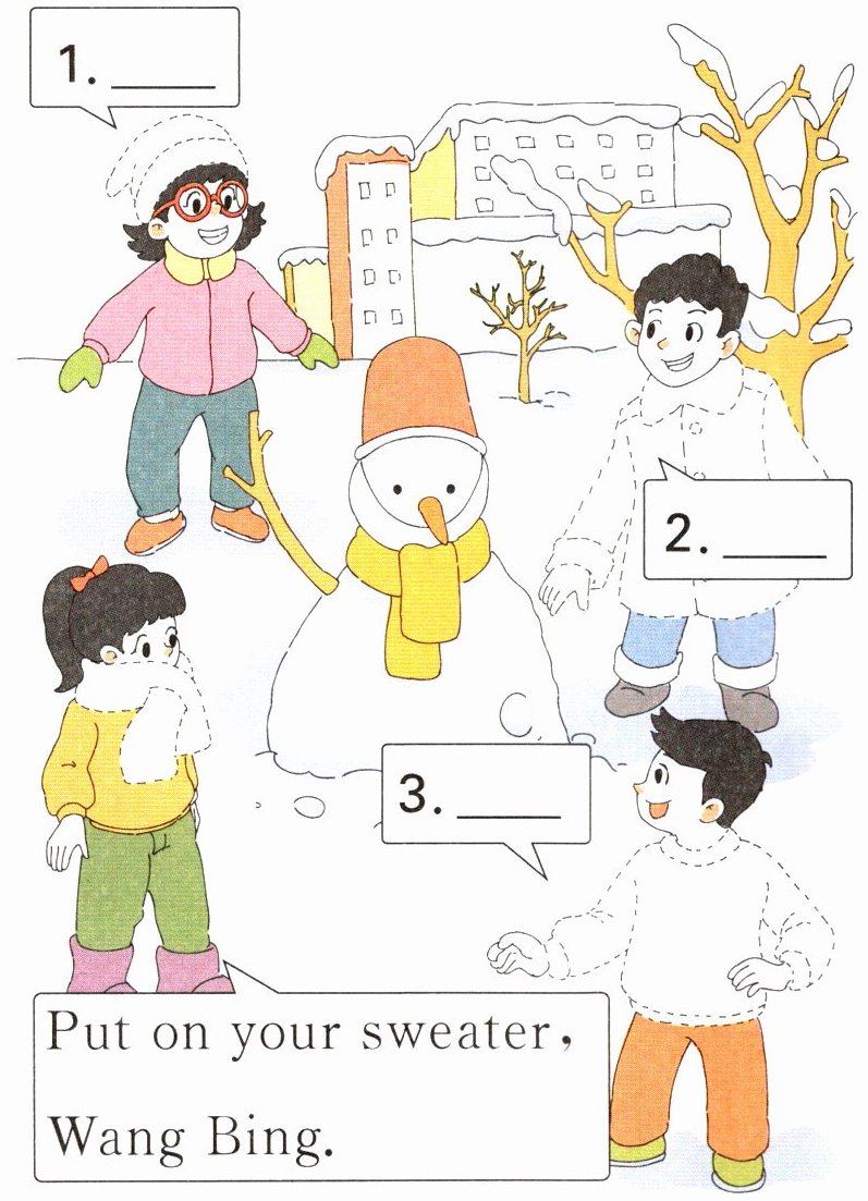 1.______ 2.______ 3.______ Put on your sweater,Wang Bing.