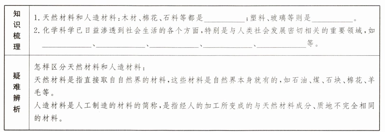 1. 天然材料 人造材料 2. 功能材料制造 新能源开发 环境保护 生命过程研究 太空探索