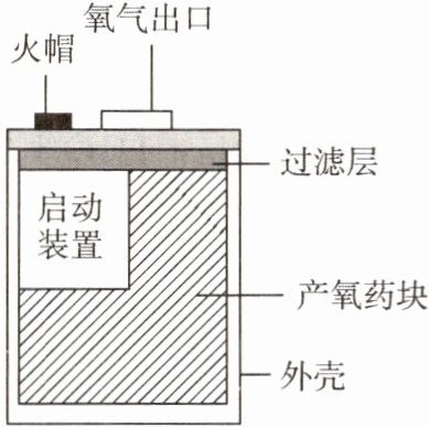 13. 某简易制氧装置的示意图如图所示,其原理是通过撞击火帽触发启动装置产生热量,使产氧药块分解而持续释放氧气。