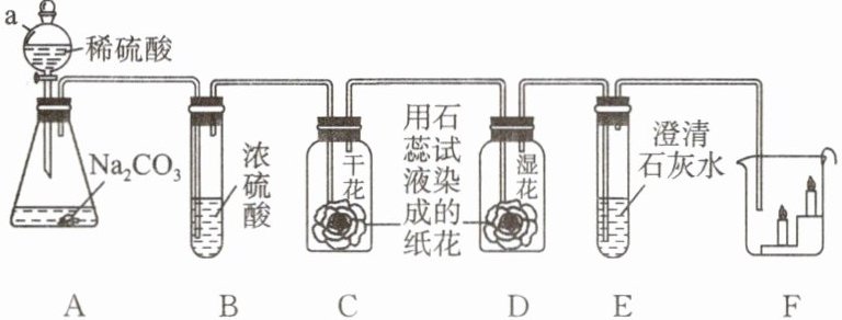 。(5)装置F中观察到点燃的蜡烛由低到高依次熄灭,由此可得出$ CO_2 $的性质有