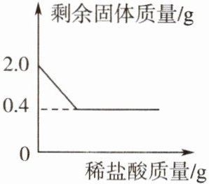 13. 为测定某石灰石样品中碳酸钙的质量分数,化学小组的同学取2.0g石灰石样品于烧杯中,然后向烧杯中逐渐加入稀盐酸并振荡,烧杯中剩余固体的质量与加入稀盐酸的质量关系如图所示。已知石灰石中的杂质既不与盐酸反应,也不溶于水;氯化钙易溶于水。