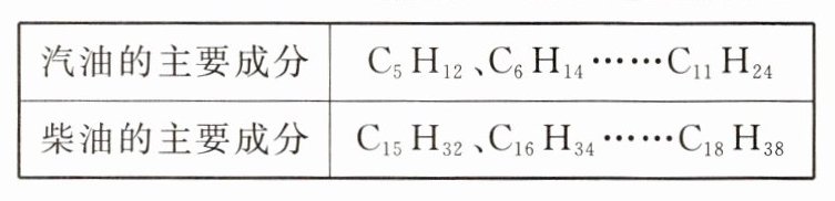 (1) 用石油可以精炼出多种燃料。根据下表分析,在相同条件下,柴油比汽油燃烧时更容易产生黑烟,原因是