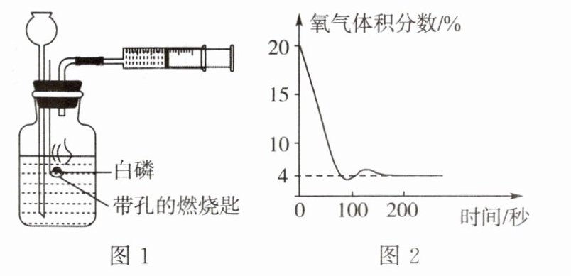 【深入探究】定量检测白磷在瓶内燃烧时氧气的体积分数的变化,结果如图 2 所示。