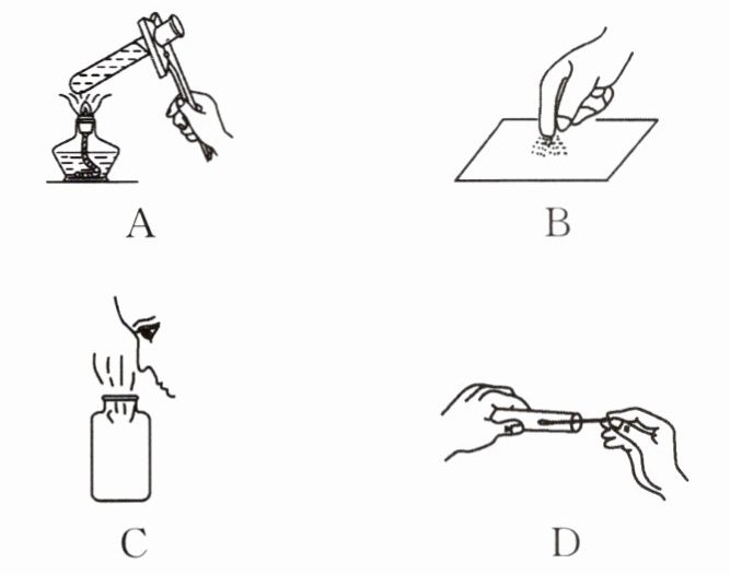 )A.取用固体试剂一般用药匙,把粉末状固体试剂装入试管中也可借助纸槽