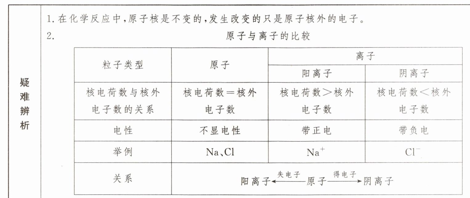 二、2.电荷 阳离子 阴离子;3.钠离子和氯离子;4.氯化氢分子