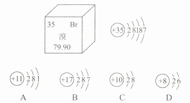 (3)A、B、C、D 四种元素中,与溴化学性质相似的是