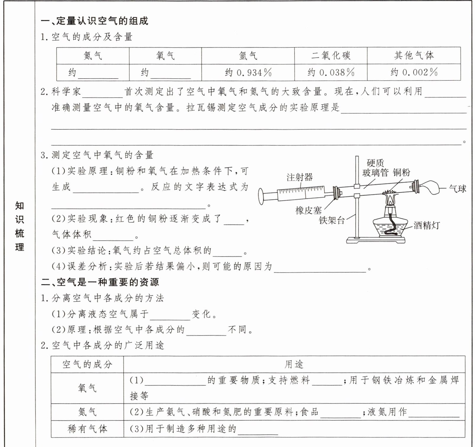 2.拉瓦锡 氧气传感器 依据空气混合物中各组分性质的差异,利用化学反应,在不引入新的气态杂质的前提下,将氧气转化为固态的氧化汞,从而达到测定空气中氧气含量的目的