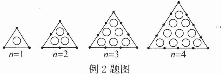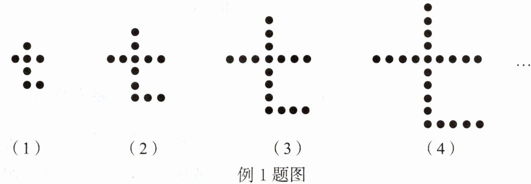 例1 如图,用围棋子按某种规律摆成的一行“七”字,按照这种规律摆下去,第$n$个“七”字中的围棋子的个数是多少?