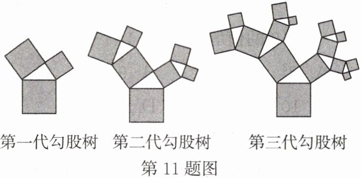 11. “勾股树”是以正方形一边为斜边向外作直角三角形,再以该直角三角形的两直角边分别向外作正方形,重复这一过程所画出来的图形,因为重复数次后的形状好似一棵树而得名。假设如图分别是第一代勾股树、第二代勾股树、第三代勾股树,按照勾股树的作图原理作图,则第六代勾股树中正方形的个数为______。