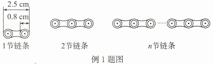 (2) 由(1)可得,$ n $ 节链条长为 $ 2.5n - 0.8(n - 1) = (1.7n + 0.8)cm $。