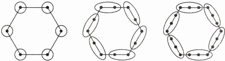 图 1 有 6 个点,图 2 有 12 个点,图 3 有 18 个点,…,按此规律,求图 10、图 $ n $ 有多少个点。
