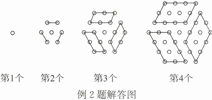 第 2 个点阵中圆圈有 $ 3×2 + 1 = 7(个) $,