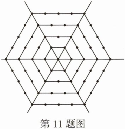 11. 如图,有一个形如六边形的点阵,它的中心是一个点,第二层每边有两个点,第三层每边有三个点,依次类推。