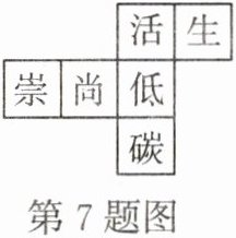 7. 一个正方体的每个面都写有一个汉字,其表面展开图如图所示,则在该正方体中,若“生”在正方体的前面,则这个正方体后面的汉字是“______”。