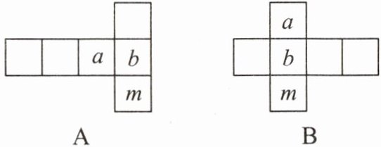 6. 如图,已知一个正方体的三个面上分别标有字母$a$,$b$,$m$,不考虑字母方向,则它的展开图可能是下面四个展开图中的( )。