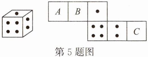 5. 一个骰子相对两面的点数之和为 7,它的展开图如图,下列判断正确的是( )。