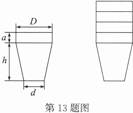 13. 如图是1个纸杯和若干个叠放在一起的纸杯的示意图,在探究纸杯叠放在一起后的总高度$H与杯子数量n$的变化规律的活动中,我们可以获得以下数据(字母),请选用适当的字母表示$H = $ 。