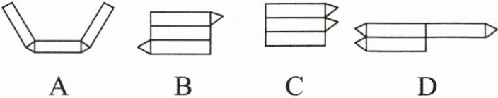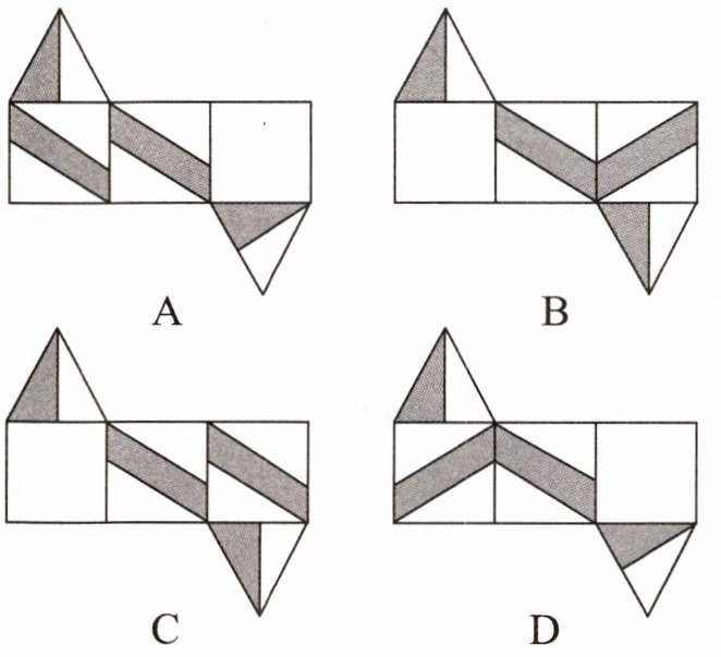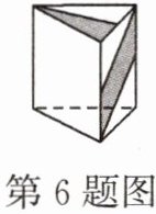 6. 如图是一个三棱柱形的纸盒。在下面四个图中,只有一个展开图是这个纸盒的展开图,那么这个展开图是( )。