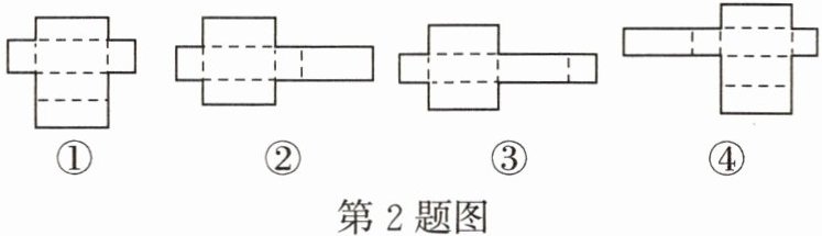 2. 如图,图中各硬纸片不可以沿虚线折叠成长方体纸盒的是( )。