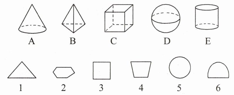 9. 用平面截几何体可得到平面图形,在表示几何体的字母后填上它可截出的平面图形的号码。
