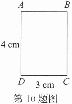 10. 如图是一个长为4cm、宽为3cm的长方形纸片,将该长方形纸片绕一条边所在的直线旋转一周,然后用平面沿与 $AB$ 平行的方向去截所得的几何体,求截面的最大面积(结果保留$\pi$)。