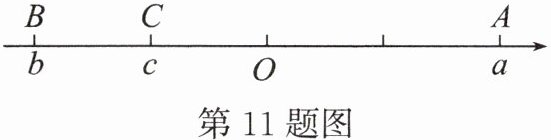 11. 有理数 $ a $,$ b $,$ c $ 在数轴上的对应点为 $ A $,$ B $,$ C $,其位置如图所示,若 $ OA = OB $。