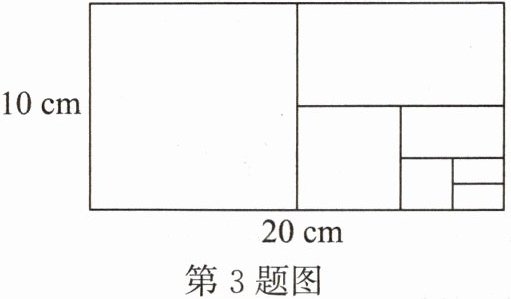3. 如图,一张长 $20$ cm、宽 $10$ cm 的长方形纸片,第一次截去一半,第 2 次截去剩下部分的一半,…,如此截下去,第 6 次后剩下部分的面积是( )$cm^{2}$。