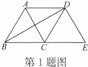 1. 如图,将等边三角形 $ ABC $ 绕点 $ C $ 顺时针旋转 $ 120^{\circ} $ 得到 $ \triangle EDC $,连接 $ AD $,$ BD $,则下列结论:① $ AC = AD $;② $ BD \perp AC $;③ 四边形 $ ACED $ 的四条边都相等。其中正确结论的个数是(