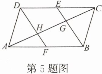 5. 如图,在$□ ABCD$中,$\angle ABC$和$\angle ADC$的平分线分别交对边于点$E$,$F$,交四边形$ABCD$的对角线$AC$于点$G$,$H$。求证:$AH = CG$。