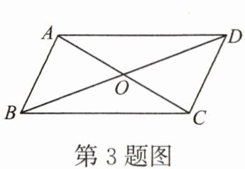 3. 如图,$□ ABCD$的周长是$18\ cm$,对角线$AC$,$BD$相交于点$O$。若$\triangle AOD$与$\triangle AOB$的周长的差是$5\ cm$,则边$AB$的长是