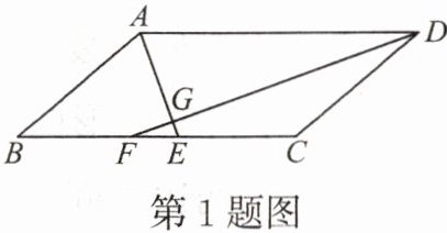 1. 如图,在$□ ABCD$中,$\angle ADC$,$\angle DAB$的平分线$DF$,$AE$分别与边$BC$相交于点$F$,$E$,$DF$与$AE$相交于点$G$。求证:$AE\perp DF$。