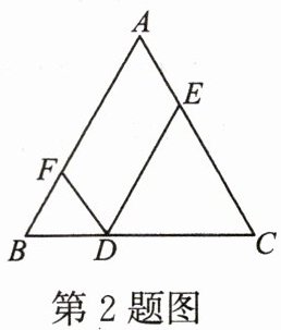 2. 如图,在 $\triangle ABC$ 中,$AB = AC = 5$,点 $D$ 是 $BC$ 上的点,$DE// AB$,交 $AC$ 于点 $E$,$DF// AC$,交 $AB$ 于点 $F$,则四边形 $AFDE$ 的周长是(