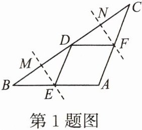 1. 如图,在等腰三角形纸片 $ABC$ 中,$AB = AC$,把 $\angle B$ 沿 $EM$ 折叠,使点 $B$ 落在点 $D$ 上,把 $\angle C$ 沿 $FN$ 折叠,使点 $C$ 也落在点 $D$ 上.