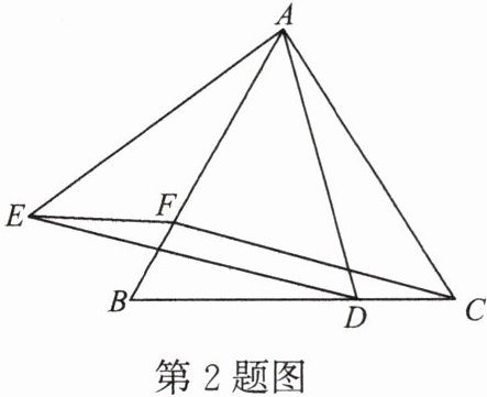 2. 已知 $\triangle ABC$ 为等边三角形,点 $D$,$F$ 分别是 $BC$,$AB$ 上的点,且 $CD = BF$,以 $AD$ 为边作等边三角形 $ADE$.