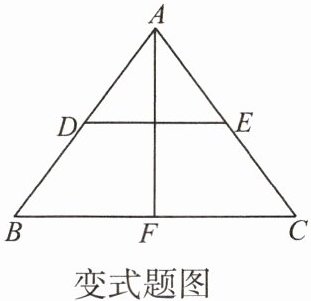 变式 如图,$ DE $ 是 $ \triangle ABC $ 的中位线,$ AF $ 是 $ BC $ 边上的中线. 求证:$ DE $ 与 $ AF $ 互相平分.