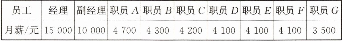 (2)平均月薪 6000 元能客观反映员工的平均收入吗?若不能,你认为用哪个数据表示该公司员工收入的平均水平更合适?