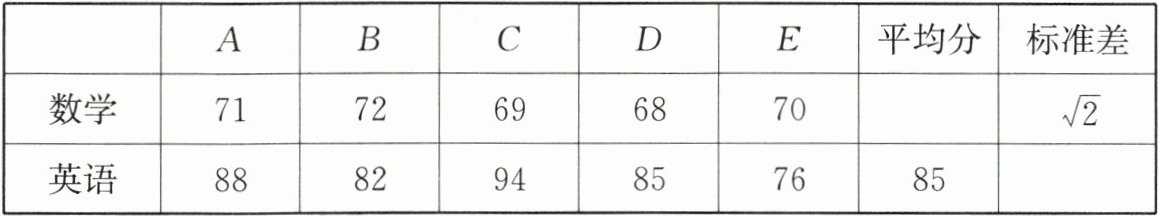 (1) 求这五名同学在本次考试中数学成绩的平均分和英语成绩的标准差。