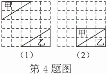 4. 如图,在 5×5 的方格纸中,将图(1)中的三角形甲平移到图(2)中所示的位置,与三角形乙拼成一个长方形,那么,下面的平移方法中,正确的是(